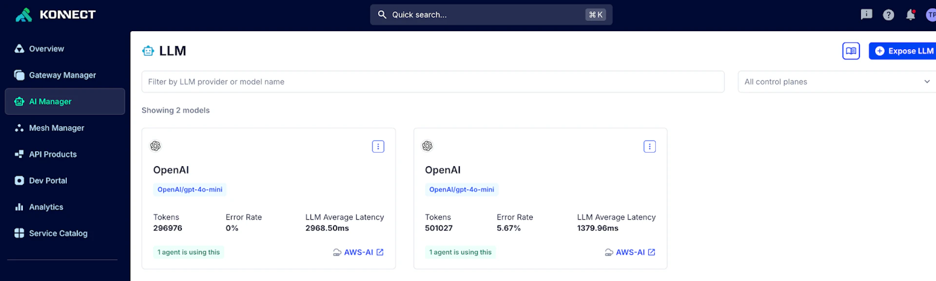 - Konnect アカウントで、AI Manager セクションに移動します。