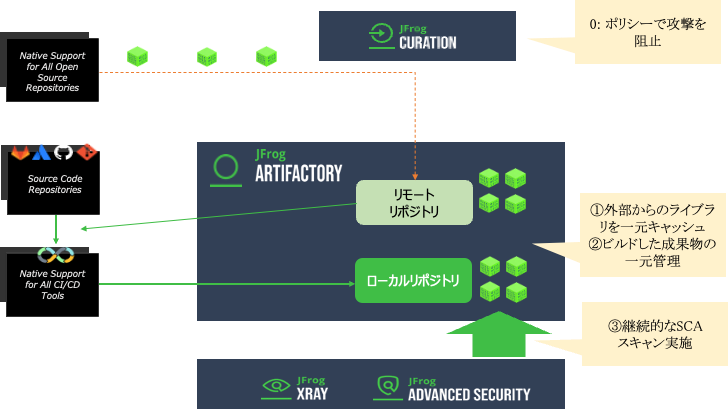 JFrogでは、この2つのフェーズをそれぞれ Curation(流入防止) と Xray(検知・隔離) でカバーしています。