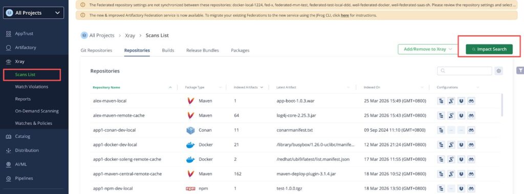 - Xrayのデータベースが最新であること、すべての対象リポジトリのインデックスが完了していることを確認。
